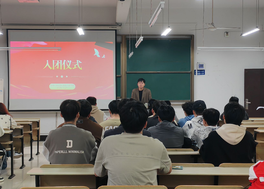 金秋送爽,丹桂飘香。为深入学习贯彻党的二十大、党的二十届四中全会精神,引导广大青年厚植爱党、爱国、爱社会主义的情感,增强共青团组织的凝聚力与战斗力,10月27日下午,我院于建北505教室隆重举行新团员入团仪式,伟德国际1946团委副书记朱珉琨及全体新团员参加。