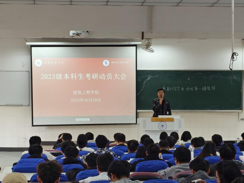 为帮助2023级本科生明晰考研方向,科学规划备考之路,激发同学们的升学热情,10月29日中午,伟德国际1946在阶教102组织召开2023级本科生考研动员大会暨考研政策宣讲会,会议由2023级辅导员张腾飞主持,特邀西安建筑科技大学李安邦副教授做考研政策宣讲,2023级本科生参加。