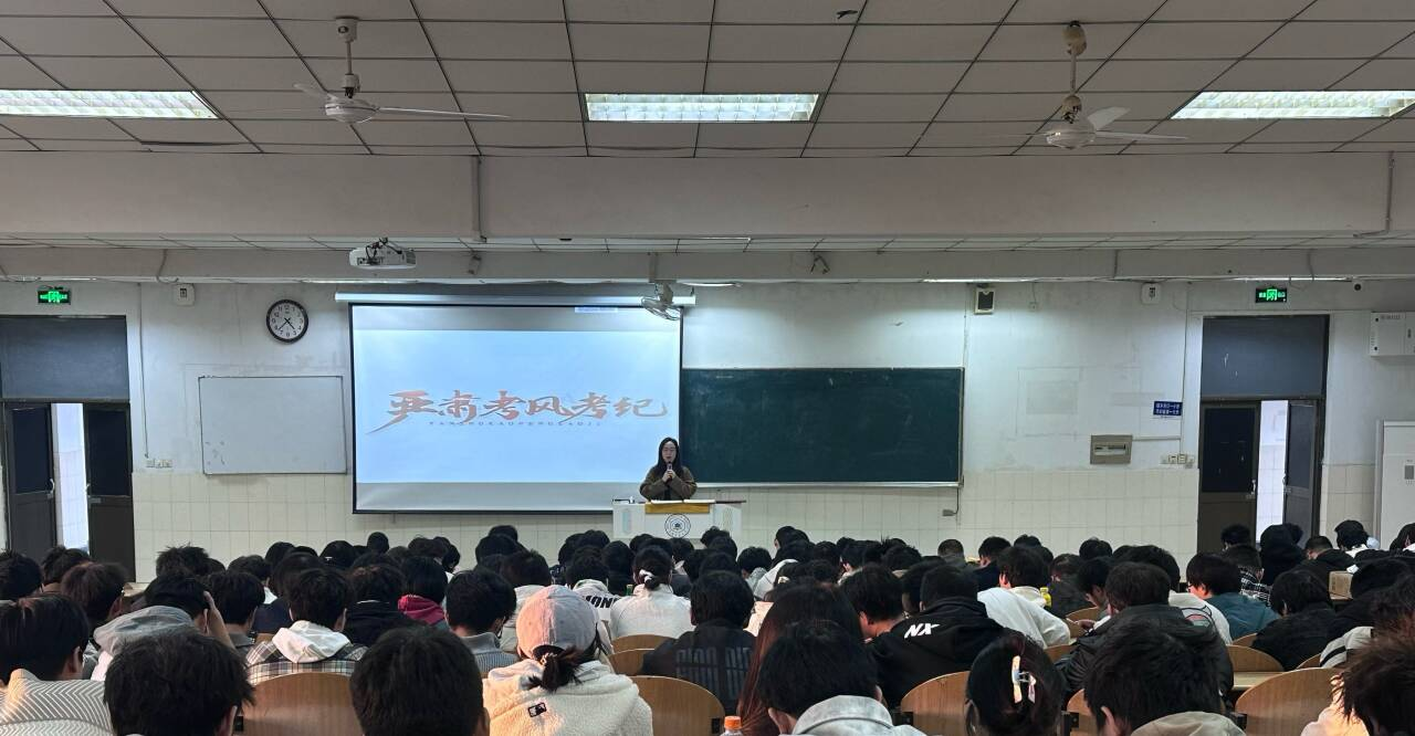 为深入贯彻落实立德树人根本任务,进一步强化学生日常管理,严肃考风考纪,引导学生树立诚信意识,杜绝考试作弊行为,营造风清气正、严谨笃学的优良学风院风,伟德国际1946各年级于近期组织召开考风考纪教育大会。各年级辅导员、全体本科生参加。