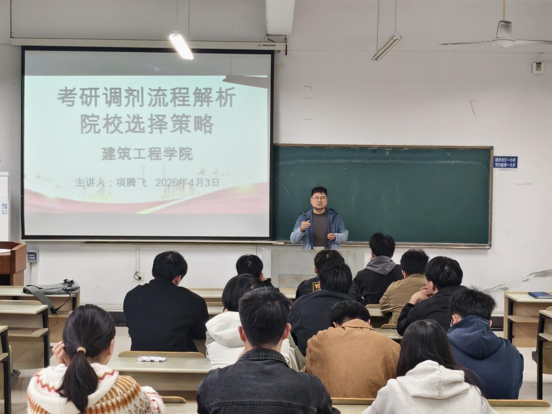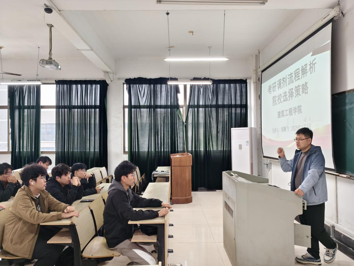 会上,项腾飞老师围绕考研调剂流程解析与院系选择策略两大主题,进行了系统细致的讲解。他结合多年指导经验,梳理了调剂信息获取渠道、志愿填报技巧、复试准备要点等关键环节,并针对不同分数段学生的实际情况,提出了具体可行的院系选择建议。讲解结束后,项老师耐心回答了同学们提出的各类疑问,现场互动热烈。